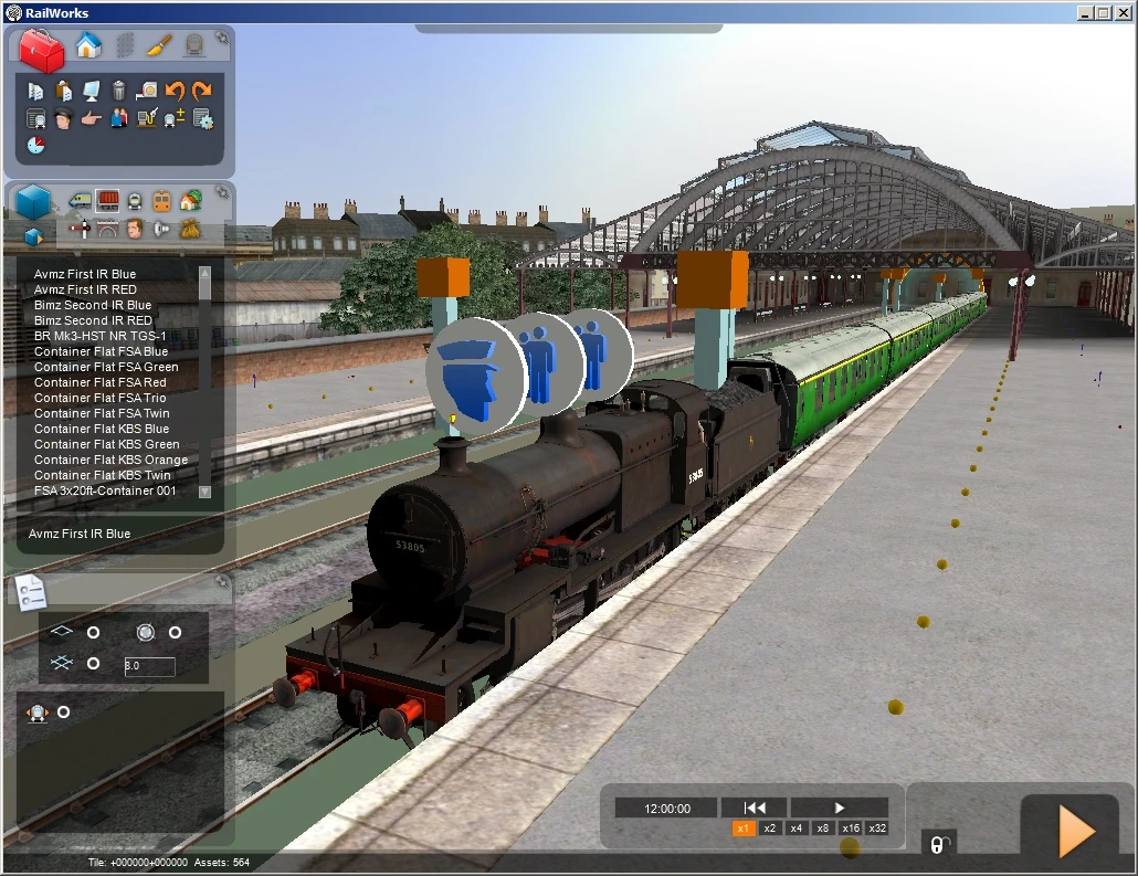 When you go back into the 3D view you will see that two new symbols have appeared behind our driver icon, those are for the passenger stops showing that this engine has some instructions. We are nearly done here, only two things to be done left.